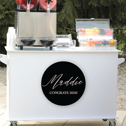 Classic cart vibes for easy elegance. Perfect for birthdays, showers, or brunches. Add flair with our white bar cart and frosé machine—just garnish and go!
